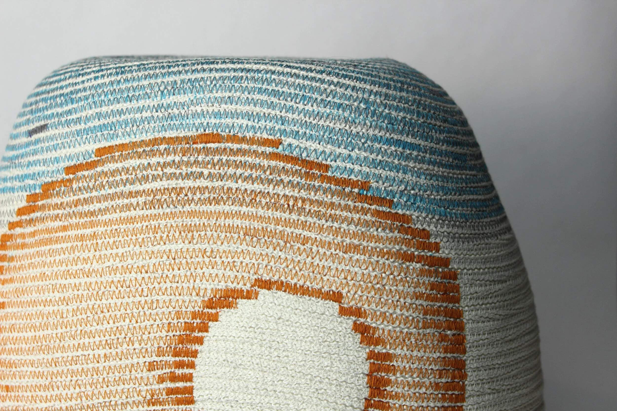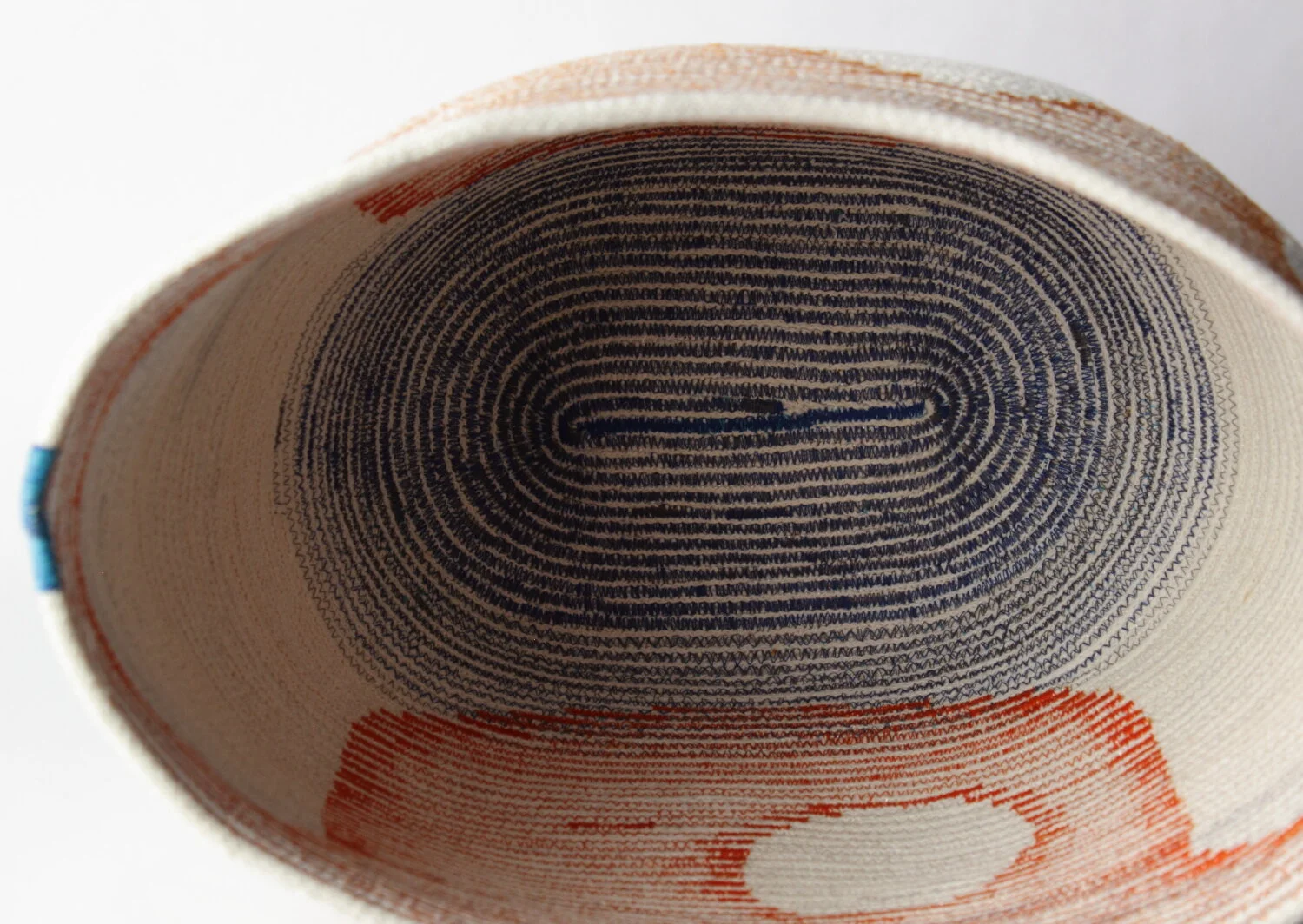 Created with my beloved Singer 107 w 50, a cylinder head industrial machine that was made in the 1950s for factory work. These rare zig-zag machines are designed to sew sweat bands into hats. Mine had a former life in an east coast hat factory that had been moved to China.